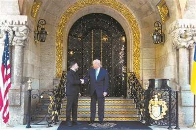 特朗普在海湖庄园门口迎接泽连斯基时对媒体记者说,泽连斯基和俄罗斯总统普京“都希望达成协议”。他打算在与泽连斯基会晤后同普京再次通电话。