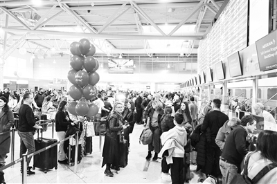 希腊交通部表示,故障导致部分飞往希腊的航班备降周边国家机场,一些航班被迫推迟或取消。雅典国际机场约有90架次航班受到影响,希腊北部塞萨洛尼基机场约有75架次航班受波及,全国其他机场也有数十架次航班受到影响。图为旅客滞留在希腊雅典国际机场。