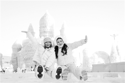 近日,第42届中国·哈尔滨国际冰雪节在哈尔滨冰雪大世界启幕。作为中国首个以冰雪为主题的国际性节庆活动,哈尔滨国际冰雪节已走过41载春秋,是世界四大冬令盛典之一。图为游客在哈尔滨冰雪大世界园区拍照。 新华社发