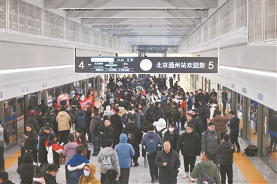 走进北京通州站B2层候车大厅,环境明亮通透,旅客们在工作人员引导下排队通过检票口,乘坐扶梯来到B3层站台。记者发现,铁路站台安装了“全包裹”屏蔽门,既保障旅客乘车安全,又有助于防火。上午10点,开往唐山的G6751次复兴号列车准时发出,车厢内干净整洁、座椅舒适。11分钟后,列车抵达燕郊站。家住燕郊在国贸附近上班的刘女士刚下夜班,正好乘坐这趟列车回家,“以前我主要的通勤方式是乘坐公交车或者拼车,但早晚高峰交通容易拥堵,路上有时要花一两个小时。今后我可选择乘地铁到通州站,再坐高铁直达燕郊,能节约不少时间。”