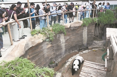 “辰星”“晓月”去年11月搭乘专机抵达马来西亚首都吉隆坡。这是继去年5月大熊猫“福娃”“凤仪”回国后,中马双方开启的新一轮为期10年的大熊猫保护合作研究。图为人们在马来西亚吉隆坡附近的马来西亚国家动物园观看大熊猫“辰星”。