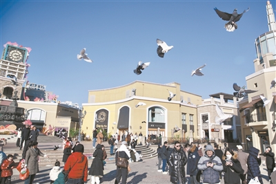 昨天,冬日暖阳下,北京蓝色港湾内,成群白鸽翩跹。市民与游客驻足投喂,伸手逗弄,白鸽时而盘旋起落,时而停驻肩头,人与动物和谐互动的画面,为寒冷的冬日增添了一抹温暖惬意的亮色。