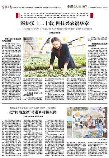 在大兴区,有一位与泥土打交道、和庄稼交朋友的育苗专家。她扎根农业一线二十载,以科技创新为犁,以产业振兴为志,深耕种苗培育、西甜瓜产业升级等领域,带领农民在乡村振兴的大道上阔步前行。她就是大兴区种植业技术推广站站长哈雪姣。2025年,哈雪姣被授予北京市先进工作者称号。
