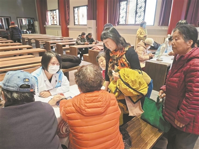 本报讯(记者 刘欣欣) 近日,朝阳区医疗卫生工会下属北京四惠中医医院工会组织职工志愿服务队走进高井社区开展健康宣教及义诊活动。