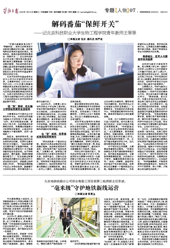 2025年,北京科技职业大学迎来第一届本科生,生物工程学科未来的发展规划将更倾向于制药工程、合成生物技术等与医疗相关的方向,这意味着王翠翠的研究领域可能面临新的转型与挑战。“合成生物技术同样离不开基因改造,植物分子研究的基础完全可以迁移过去,比如用植物细胞生产活性物质,就是很有潜力的方向。” 面对未来研究方向转型带来的新机遇,王翠翠始终坚守最初的科研初心。正如她所说:“科研就像雕刻,不能等到看清全部轮廓再动手,唯有在未知中大胆探索、细心勾勒,才能做出有创新性的成果。”