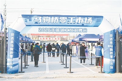 清晨的寒风中,马驹桥零工市场内一如既往聚集着众多求职者。近日,“暖冬送岗 双节稳工”专场招聘会在这里举办,62家优质企业现场提供招聘岗位需求3108个。此次活动,不仅带来了深受零工求职者欢迎的“俏活”,北京市和通州区、大兴区、北京市经济技术开发区的人社、社工、工会等多部门,还共同送来了暖心物资和新春祝福。这场活动也让热闹的马驹桥零工市场更多了一份温情。