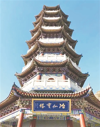 “冶塔仙灯”,位于密云城东北冶山上。该山蕴藏金矿,山上有石洞,传有冶仙居内,洞内有水,四时不竭。辽重熙八年(公元1039年)在山上修建普照寺和冶仙塔。其塔虽经多次重修,但结构一直保持辽代建筑风格,高12米,平面呈八角形,分上下两层,每层各有拱形券门,造型优美,今为密云区标志性建筑。
