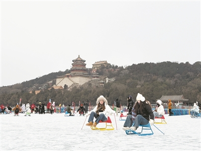上周末,颐和园昆明湖冰场向公众开放。今年,该冰场整体运营面积约16万平方米,设有玉澜堂码头、铜牛码头、排云殿码头、西堤码头4个入口,配备单人冰车、双人冰车及单人冰上自行车三类传统冰上设施,供游客选择。此外,在主要码头入口增设数字化购票电子屏,游客通过手机扫描屏幕上的购票二维码,即可快速完成门票购买。