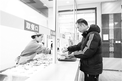 甘肃省陇南市两当县地处秦岭南麓,2025年8月,当地聚焦独居老人、外来务工者等重点群体吃饭难、吃饭贵问题,创新推出“共享食堂”项目,采取“政府补贴+市场化运营”的模式,以优惠价格面向公众供应一日三餐,让公共便民服务的温度直抵人心。图为一名男士在甘肃省陇南市两当县的两当宾馆共享食堂窗口前取餐。新华社发