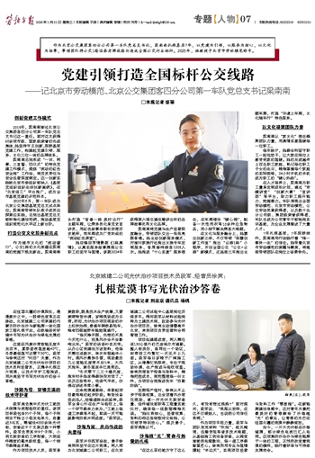 2020年8月,第一车队成为北京公交集团基层党总支试点单位。梁南南带领车队班子成员边探索边实践,总结出基层党总支部标准化建设范例,推动基层党组织规范化水平迈上新台阶。