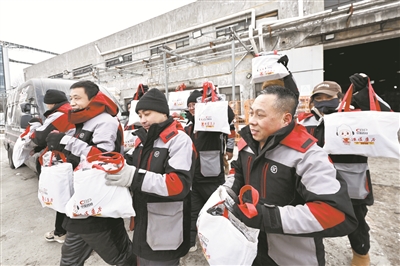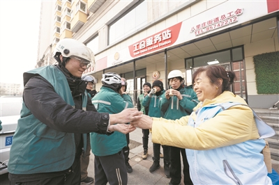虽然气温已经降到零下十几摄氏度,但大兴区生物医药基地总工会的暖心行动却让这里的快递员、外卖配送员们心里暖暖的。在顺丰快递的站点前,工会志愿者们将包含护膝、防风帽、保温杯等物资的“温暖包”递到快递员手中。“这个防风帽太实用了,可以戴在头盔里面,既保暖又不影响视线,工会想得太周到了。”快递员们开心地说。