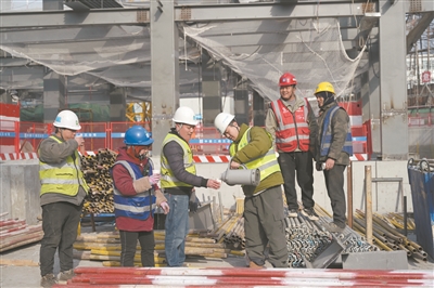 在中建二局三公司丰台中西医结合医院二期项目工地,项目进入到紧张施工阶段。连日来,工会干部每天都会熬制姜糖水送到工地,帮助工友们抵御严寒。工会还为大家发放了耳罩、暖贴等御寒物资。