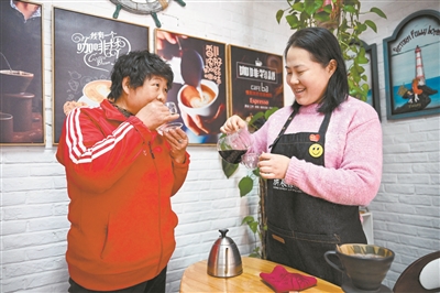 “品尝咖啡是有讲究的,一杯浓香扑鼻的咖啡端到了你的面前,请不要急于喝,而是先闻。用手罩住咖啡杯或试饮杯,深吸一口气,让香味自然扑进鼻腔中。然后再观色,咖啡的颜色总有细微差别,最好的咖啡常常呈现深棕色,而不是一片漆黑,深不见底。然后才是嘬一小口,咖啡量不能太多。当整个口腔被咖啡充满的那一刻,感受舌头上微妙的香味。最后,闻杯底之香,将咖啡喝得越干净越好,这样才能闻到杯底的咖啡香,而且每次都有不一样的惊喜。有时是果香,有时是花香,不一而足。”于明慧向记者分享着她的品咖啡体验。