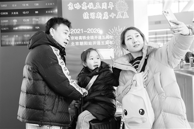 近日,北京朝阳站候车大厅内暖意融融,一曲悠扬的小提琴声缓缓流淌,在大厅的每个角落轻轻回荡。不远处的文化展示打卡墙前热闹非凡,人头攒动间,东三省的特色美食、知名景点鲜活呈现,往来旅客纷纷驻足,有人举着手机凑近拍摄,有人挽着同伴的手臂,在心仪的景点海报前并肩合影,脸上的笑容格外明媚。这一天,是北京朝阳站开通运营五周年的日子,大厅里的每一处热闹、每一声欢笑、每一段低语,为这座车站拉开了满是故事感的序幕。