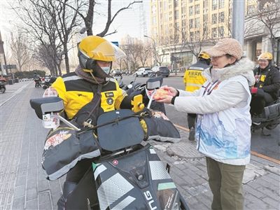 本报讯(记者 刘欣欣) 近日,朝阳区来广营地区总工会开展“冬送温暖”主题慰问活动,为坚守岗位的户外劳动者送上暖心物资和节日祝福。