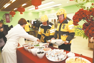 活动前期,望京街道总工会主动对接辖区爱心企业资源,牵头搭建联动平台,形成“工会搭台、企业助力、暖‘新’惠民”的良好氛围。活动现场,北京望京凯悦酒店厨师早早备齐糯米、红豆、莲子等食材,精心熬制出香气四溢的八宝粥。望京街道总工会工作人员与酒店工作人员一同,将一碗碗热气腾腾的八宝粥递到新就业形态劳动者手中。除暖心粥品外,望京街道总工会还联合该酒店为新就业形态劳动者群体准备了“福”字、实用钥匙链、防寒暖贴等物品,精准贴合户外劳动者冬日需求。