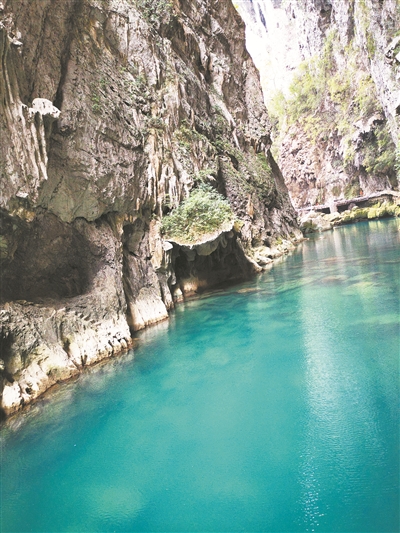 黑龙滩的万顷碧波,清幽洁净,从水面向水下张望,能见度达三米以上。难怪有诗人在这里开玩笑说:“如果需要清洗灵魂,我要用黑龙滩的水。”