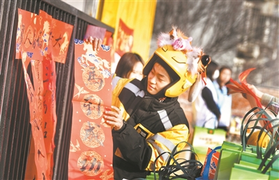 “一进门就喝到了热奶茶,更惊喜的是,有职工志愿者现场为我们书写春联。”在朝阳区将台地区将小爱暖新益站,记者遇到了刚刚送完单的美团专送骑手张耀阳,他很喜欢工会开展的活动,“不仅可以领到暖心实用的物资,还能体验义诊、理发、心理关爱等服务,工会不愧是咱们的‘娘家人’啊!”说话间,他的脸上绽放出灿烂的笑容。