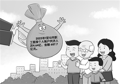 记者1月30日从国家医保局获悉,2025年1至12月职工医保个人账户共济人次4.64亿,金额687.7亿元。职工医保个人账户共济,简单来说,就是打破地域限制,让参保人个人账户的钱能让家人使用,可以通过即时调用被绑定人个人账户、医保钱包等方式实现。(1月30日 新华社)□邰怡明