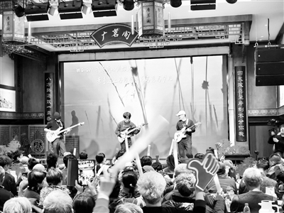 近日,西城区什刹海街道旧鼓楼社区与苇坑社区在鼓楼西大街广茗阁茶楼联合举办“中轴响鼓,河韵苇香”新春文化活动。歌舞、快板、变脸……居民自编自演的节目轮番登场,台下掌声与喝彩声此起彼伏,场面热闹而喜庆。本报记者 孙妍 摄影报道