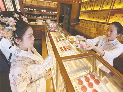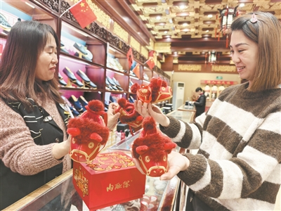 北京稻香村新上市的“京味西点”系列中的“小马慕斯”,贴合马年新春的年味,瞬间成为很多消费者的心头好。同时,稻香村推出的“枣花酥抱枕”“枣花酥文创饰品”等国潮文创也是一货难求,吸引大批消费者前来“打卡”;内联升非遗大师团队设计研发的马年生肖千层底布鞋,造型呆萌,做工精细,给人以“马到成功”的吉祥寓意,更是让许多年轻人的新春有了仪式感。同时,年轻人逛累了,还可以在内联升的“大内书院”坐下来安静地读书,体味传统文化的魅力。